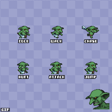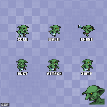 This animated goblin monster is design to work in both Turn-based RPG and Platformer games